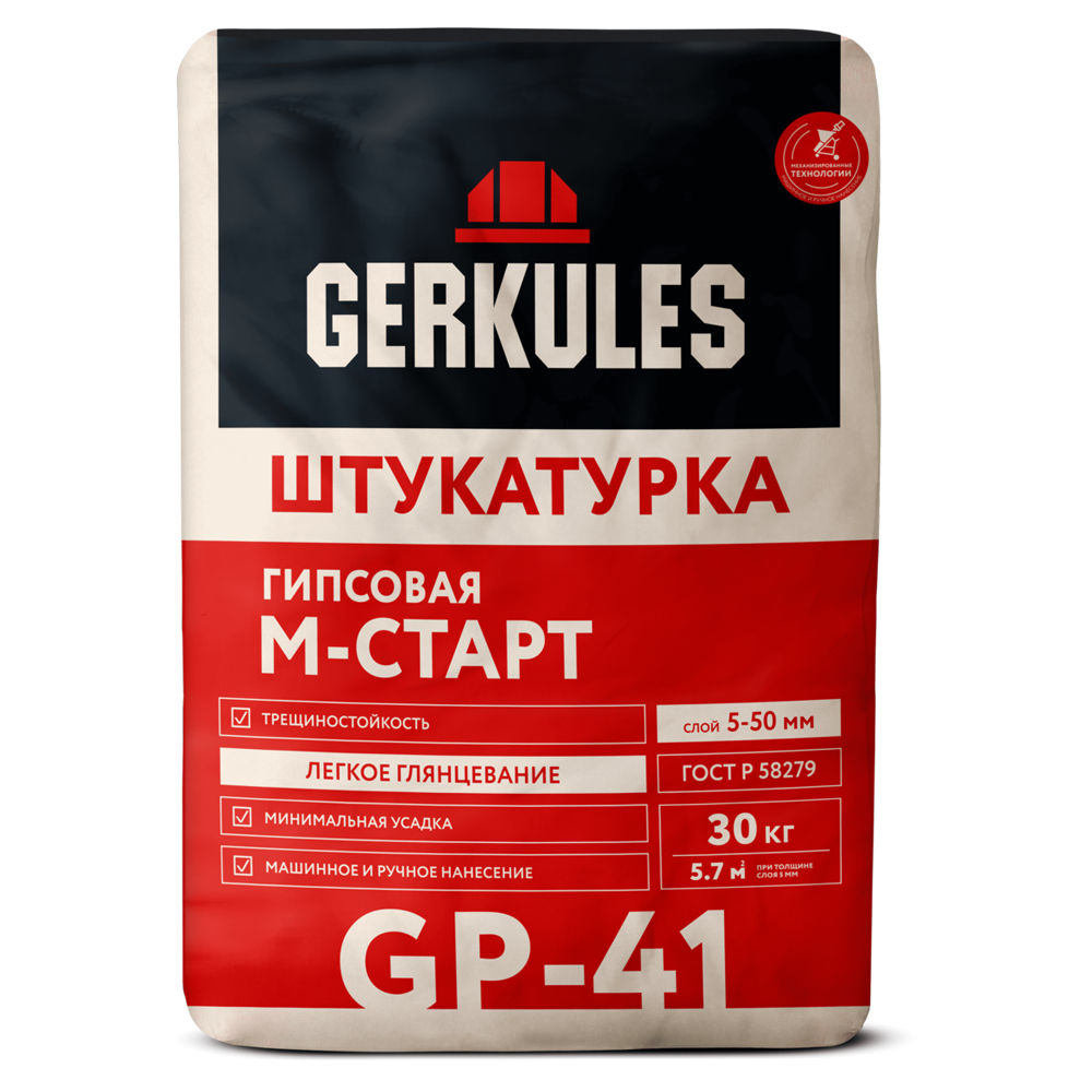 ГЕРКУЛЕС Штукатурка цементная для машинного нанесения GP-21M, 30кг/48 шт